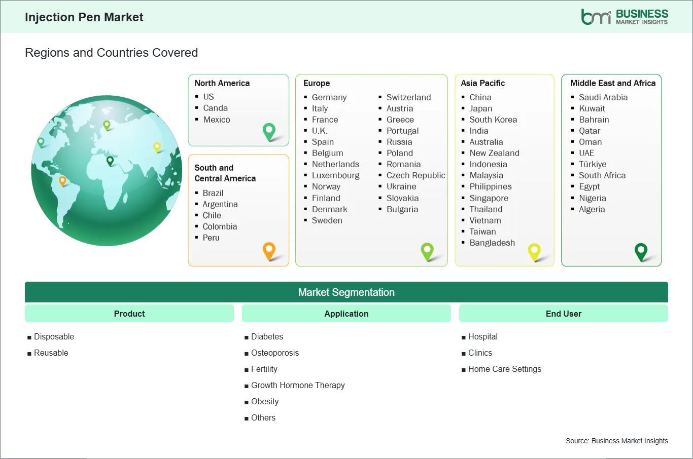 The geographical scope of the Injection Pen Market report is divided into five regions: North America, Asia Pacific, Europe, Middle East & Africa, and South & Central America.