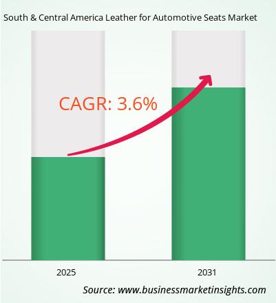 As per our report South & Central America Leather for Automotive Seats Market, the market size is valued at US$ 2,583.34 Million in 2024, projecting it to reach US$ 3,257.38 Million by 2031. This translates to a CAGR of approximately 3.6% during the forecast period.