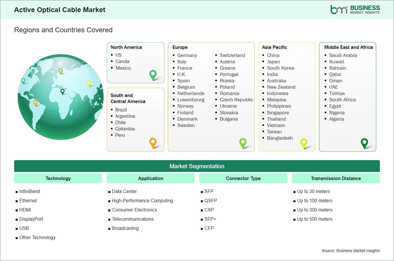 Key segments shaping the global active optical cable market include technology, application, connector type, and transmission distance.