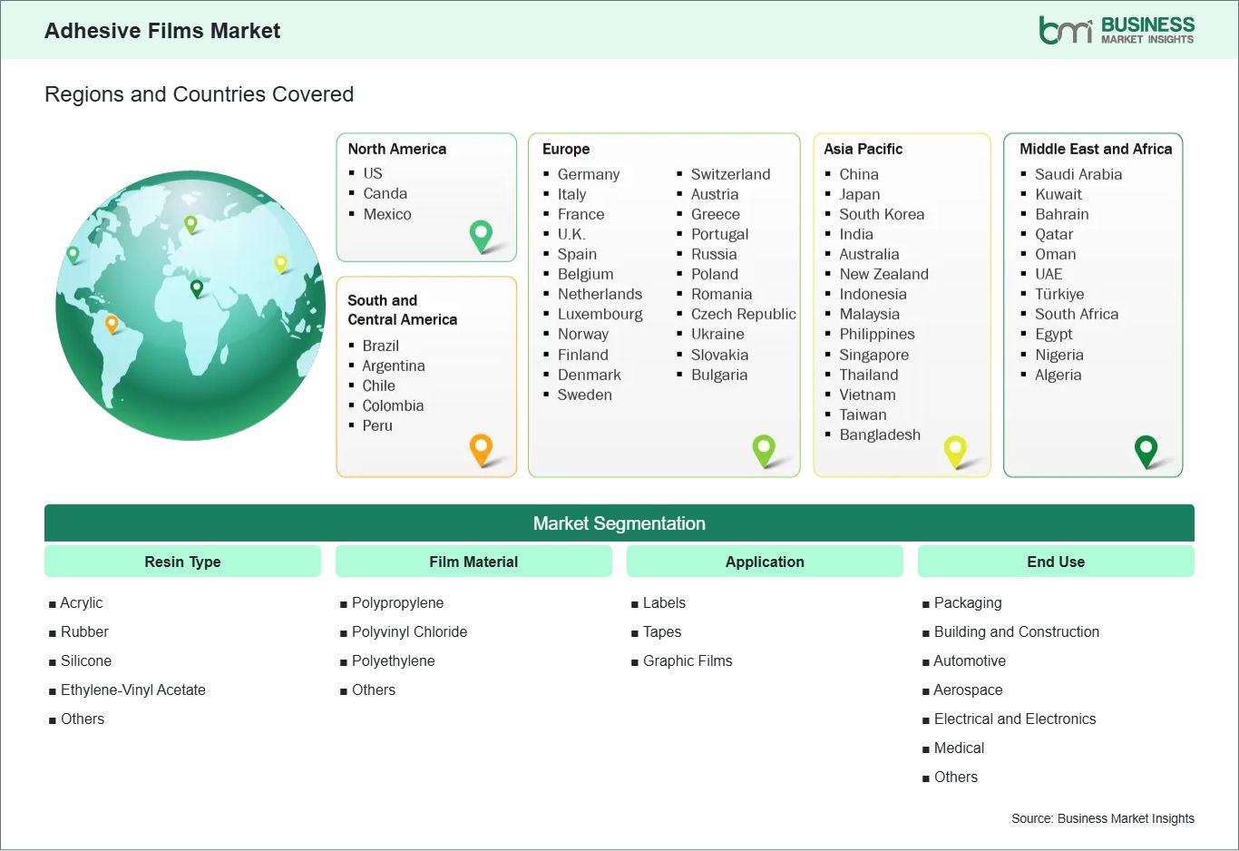 The geographical scope of the Adhesive Films market report is divided into five regions: North America, Asia Pacific, Europe, the Middle East & Africa, and South & Central America.