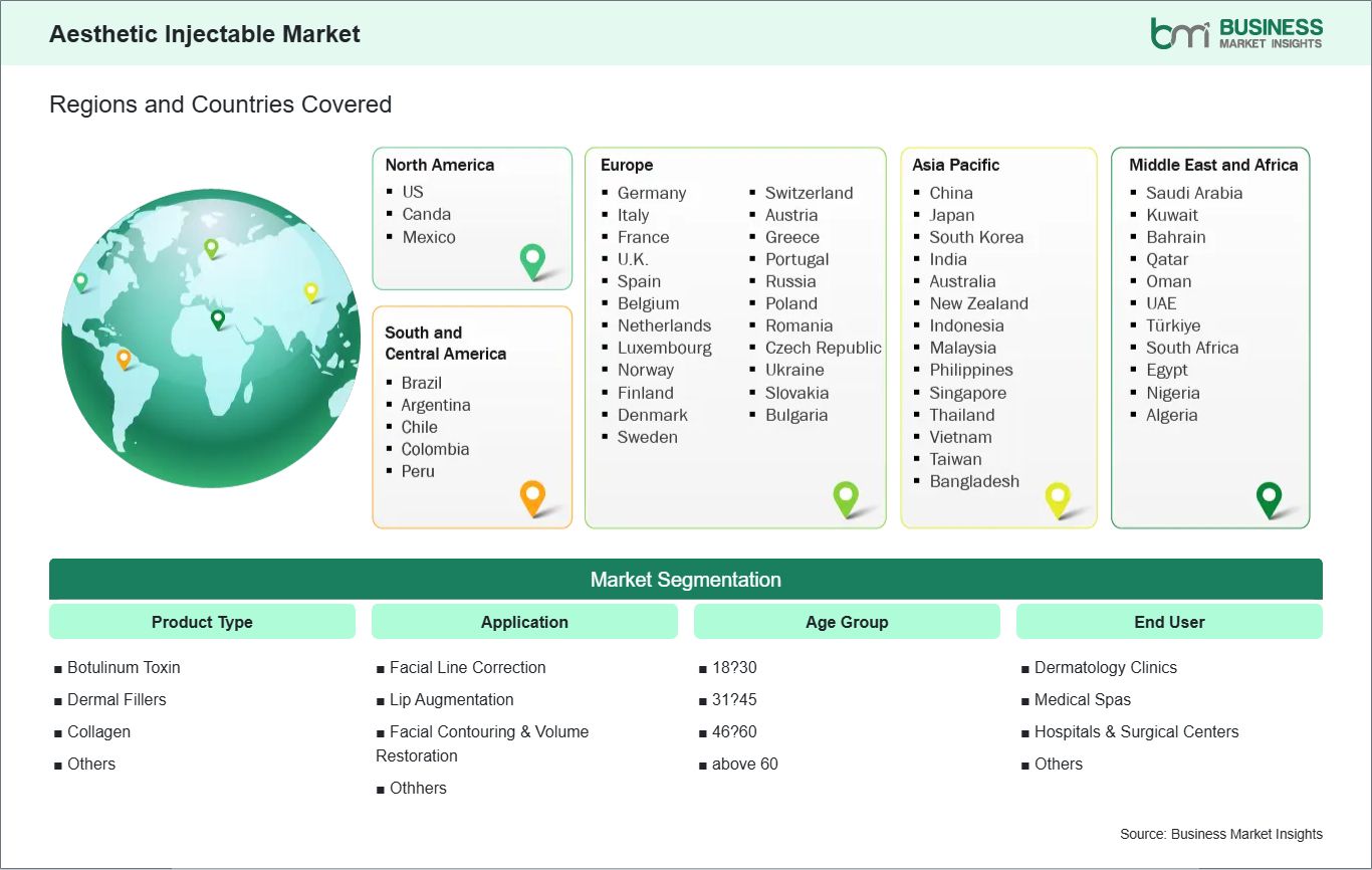 The geographical scope of the Aesthetic Injectable market report is divided into five regions: North America, Asia Pacific, Europe, Middle East and Africa, and South and Central America. The Aesthetic Injectable market in Asia Pacific is expected to grow significantly during the forecast period.