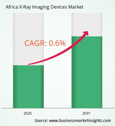 The Africa X-ray imaging devices market size is expected to reach US$ 30.7 million by 2031 from US$ 29.5 million in 2024. The market is estimated to record a CAGR of 0.6% from 2025 to 2031.
