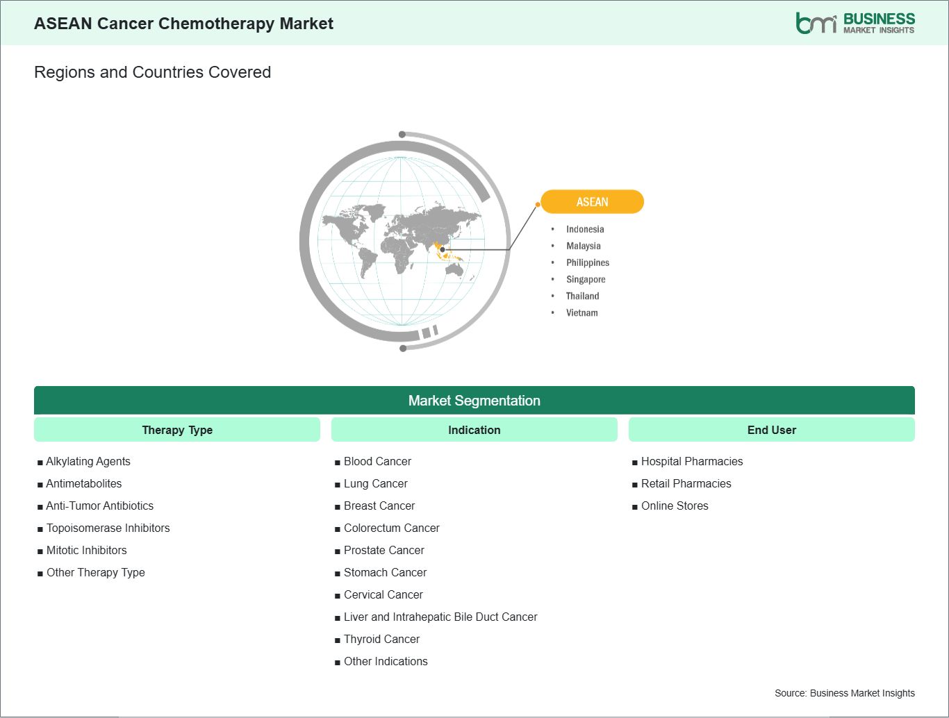 The "ASEAN Cancer Chemotherapy Market Size and Forecast (2025–2031)" report provides a detailed analysis of the market covering below areas: