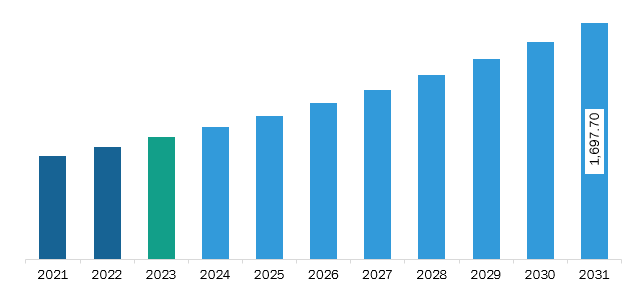 The Asia Pacific mobile cleanroom market was valued at US$ 876.45 million in 2023 and is expected to reach US$ 1,697.70 million by 2031; it is estimated to register a CAGR of 8.6% from 2023 to 2031.