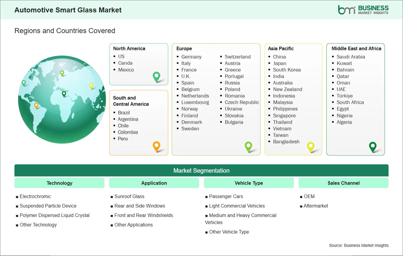 The geographical scope of the Automotive Smart Glass market report is divided into five regions: North America, Asia Pacific, Europe, Middle East & Africa, and South & Central America. The Automotive Smart Glass market in the Asia Pacific is expected to grow significantly during the forecast period.