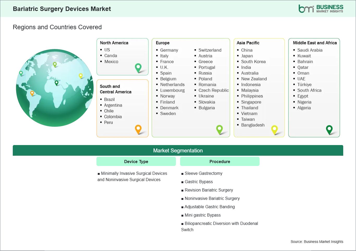 The geographical scope of the Bariatric Surgery Devices market report is divided into five regions: North America, Asia Pacific, Europe, Middle East & Africa, and South & Central America.