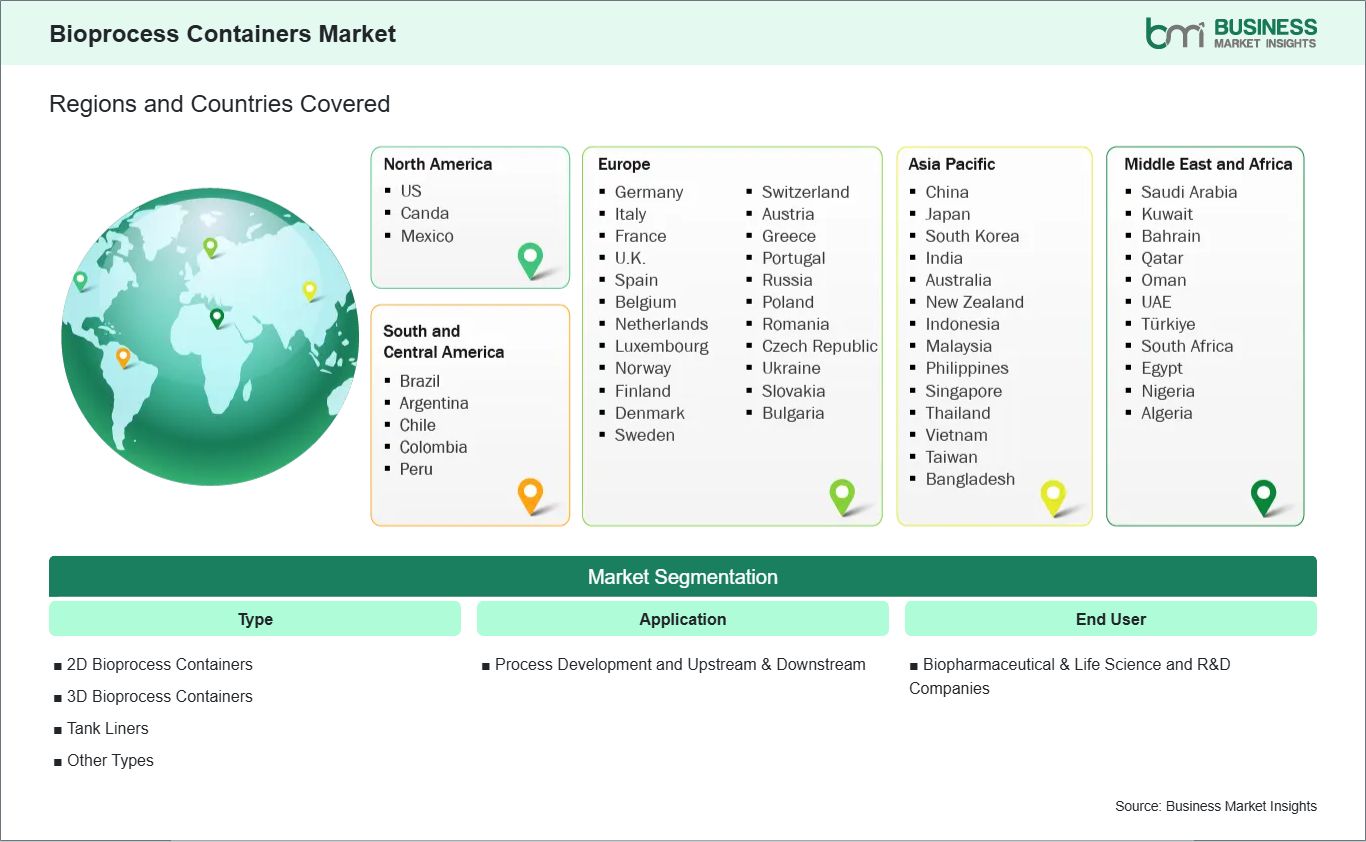 The geographical scope of the Bioprocess Containers market report is divided into five regions: North America, Asia Pacific, Europe, Middle East & Africa, and South & Central America.