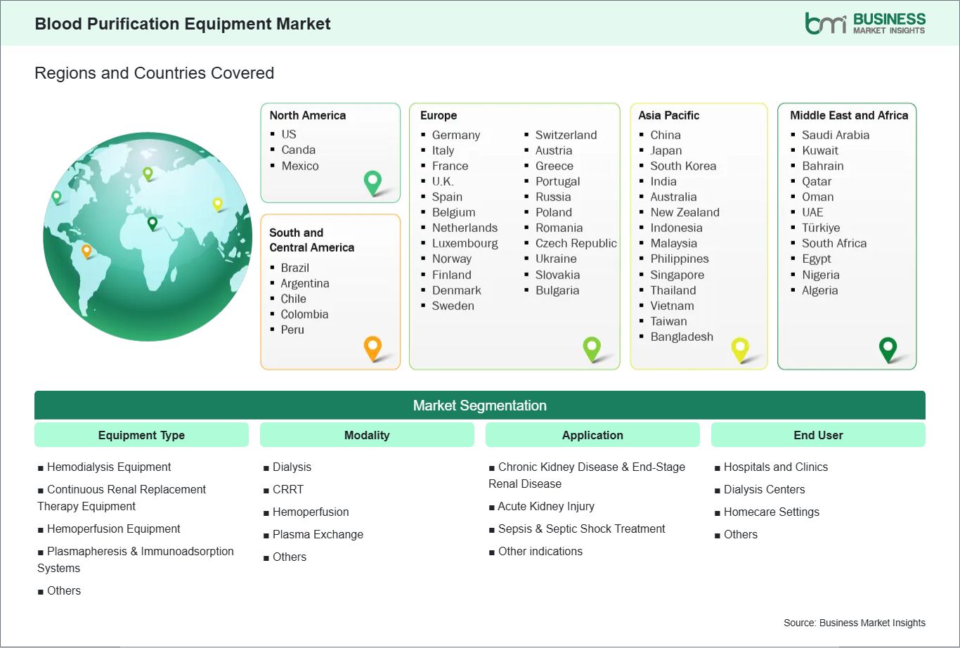 The geographical scope of the Blood Purification Equipment market report is divided into five regions: North America, Asia Pacific, Europe, Middle East and Africa, and South and Central America. The Blood Purification Equipment market in Asia Pacific is expected to grow significantly during the forecast period.