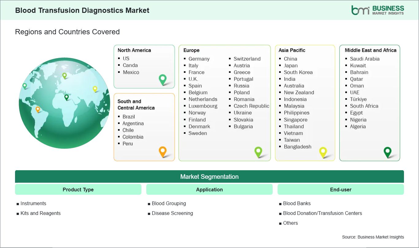 The geographical scope of the Blood Transfusion Diagnostics market report is divided into five regions: North America, Asia Pacific, Europe, the Middle East & Africa, and South & Central America.