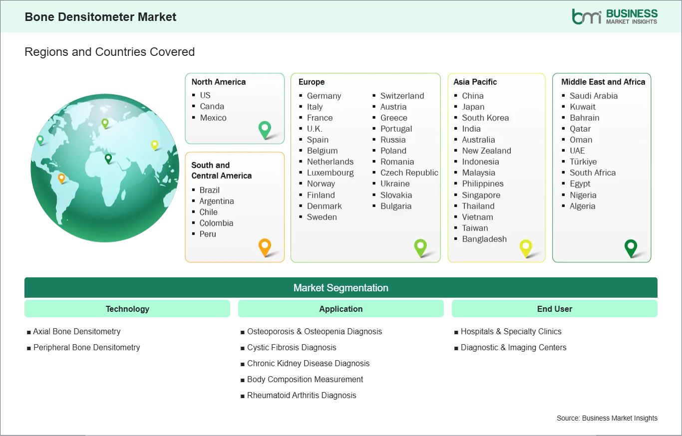 The geographical scope of the Bone Densitometer market report is divided into five regions: North America, Asia Pacific, Europe, Middle East & Africa, and South & Central America. The Bone Densitometer market in Asia Pacific is expected to grow significantly during the forecast period.