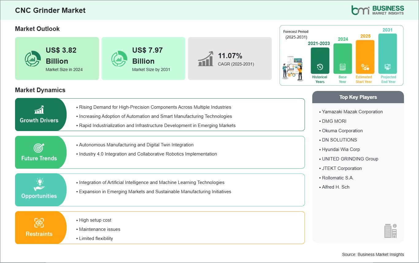 The CNC Grinder Market is valued at US$ 3.82 Billion in 2024, it is projected to reach US$ 7.97 Billion by 2031.