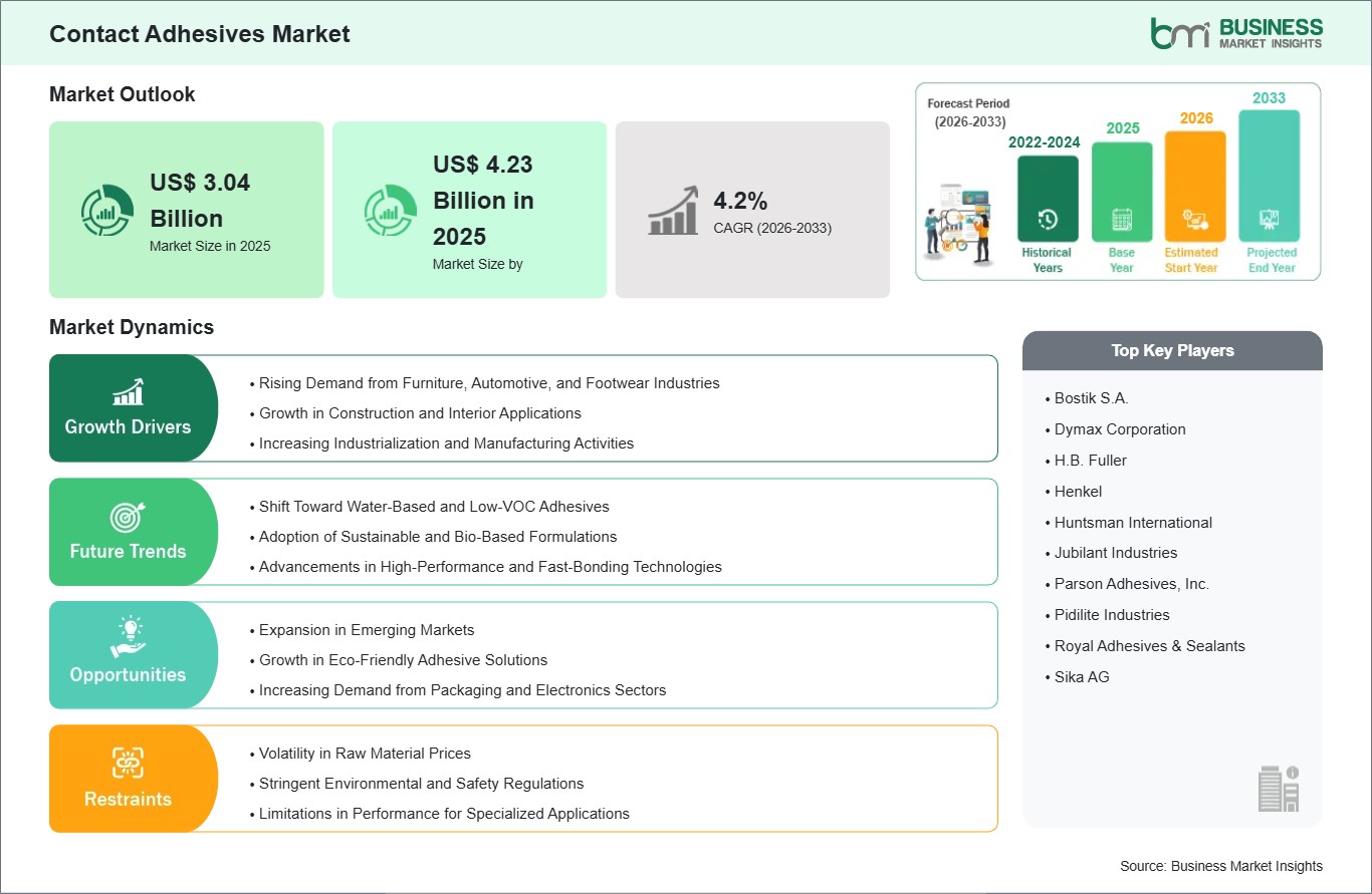 The Contact Adhesives Market is populated by several key players, each contributing to its growth and innovation. Some of the major players include: