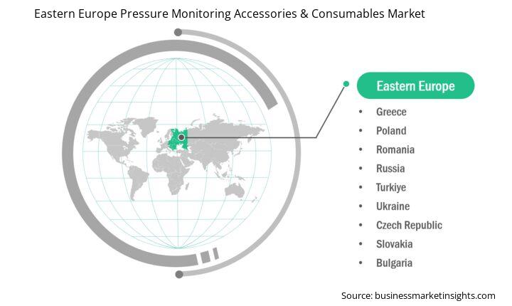 Based on country, the Eastern Europe pressure monitoring accessories & consumables market is segmented into Russia, Poland, Ukraine, Romania, the Czech Republic, Slovakia, Bulgaria, and Greece. Russia held the largest share in 2024.