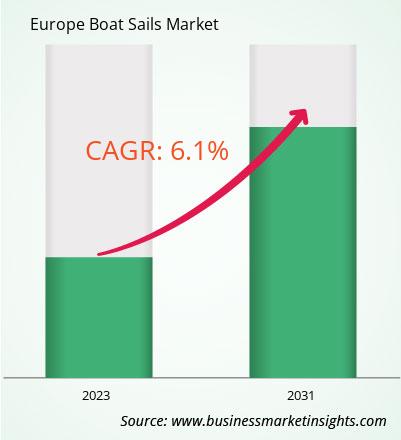 The Europe Boat Sails Market is valued at US$ 191.83 Million in 2023, it is projected to reach US$ 308.38 Million by 2031.