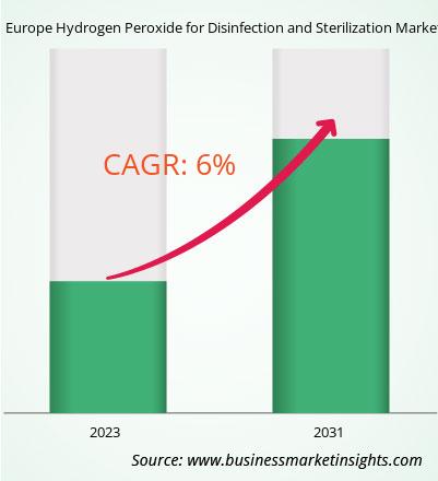 The Europe hydrogen peroxide for disinfection and sterilization market size is expected to reach US$ 263.50 million by 2031 from US$ 164.98 million in 2023. The market is estimated to record a CAGR of 6.0% from 2023 to 2031.