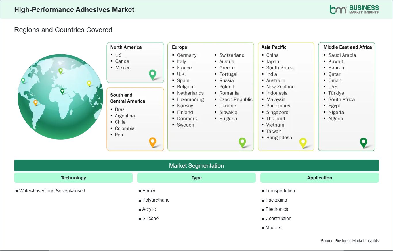 The geographical scope of the High-Performance Adhesives market report is divided into five regions: North America, Asia Pacific, Europe, the Middle East & Africa, and South & Central America.