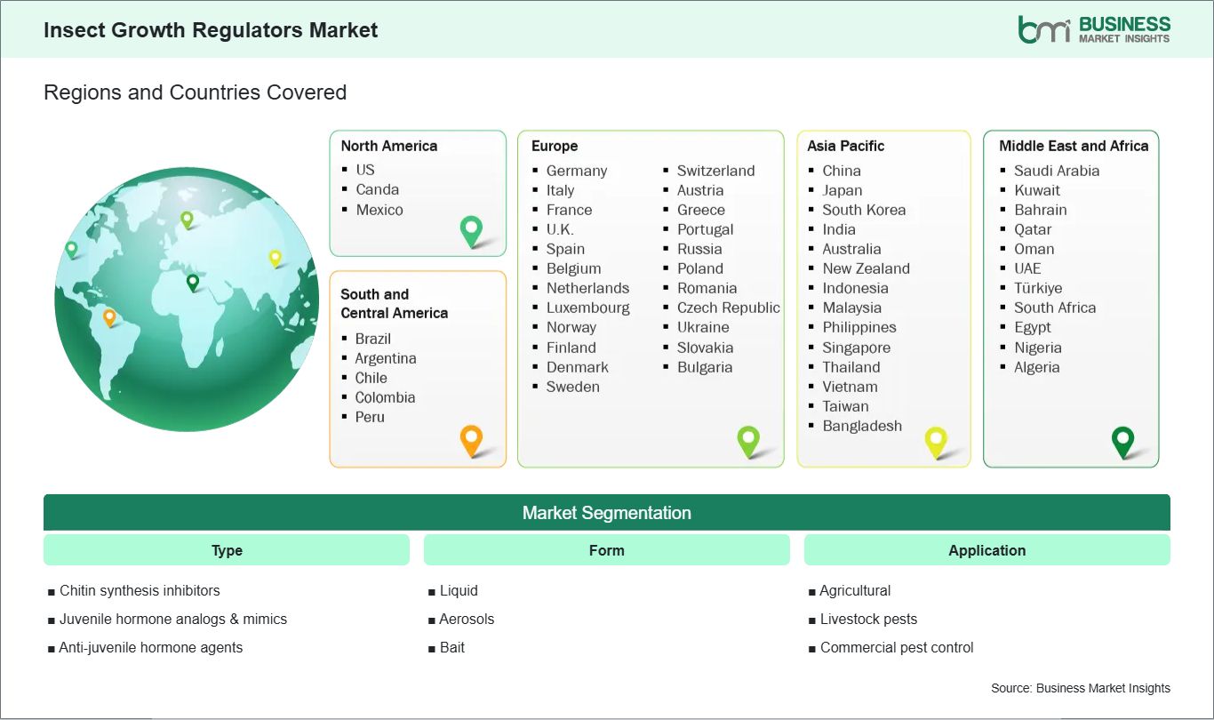 The geographical scope of the Insect Growth Regulators market report is divided into five regions: North America, Asia Pacific, Europe, Middle East & Africa, and South & Central America. The Insect Growth Regulators market in North America is expected to grow during the forecast period.