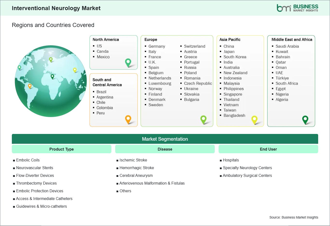 The geographical scope of the Interventional Neurology market report is divided into five regions: North America, Asia Pacific, Europe, the Middle East & Africa, and South & Central America.