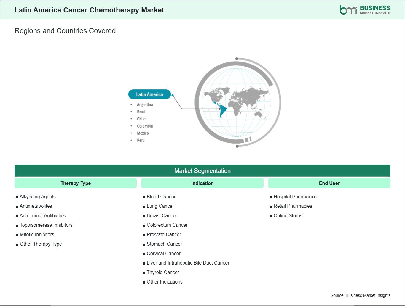 The "Latin America Cancer Chemotherapy Market Size and Forecast (2025–2031)" report provides a detailed analysis of the market covering below areas: