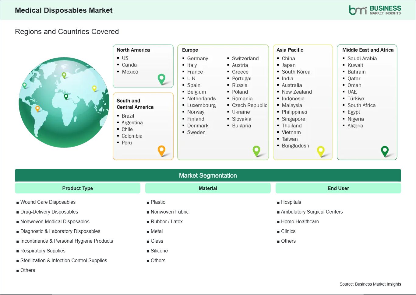 The geographical scope of the Medical Disposables Market report is divided into five regions: North America, Asia Pacific, Europe, Middle East & Africa, and South & Central America.