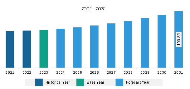 The Middle East & Africa flight planning software market was valued at US$ 73.65 million in 2023 and is expected to reach US$ 109.83 million by 2031; it is estimated to register a CAGR of 5.1% from 2023 to 2031.