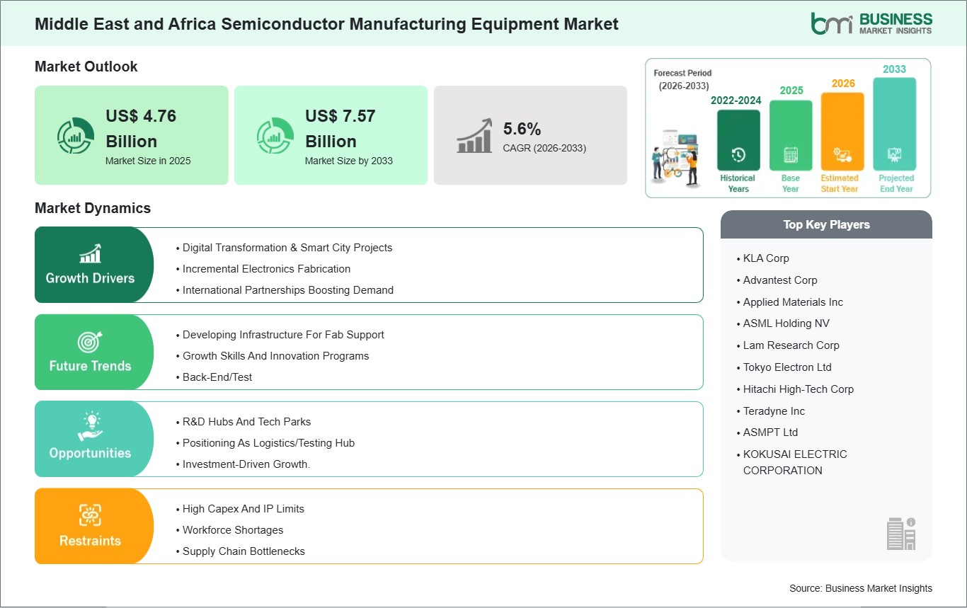 The Middle East and Africa Semiconductor Manufacturing Equipment Market is valued at US$ 4.76 Billion in 2025, it is projected to reach US$ 7.57 Billion by 2033.