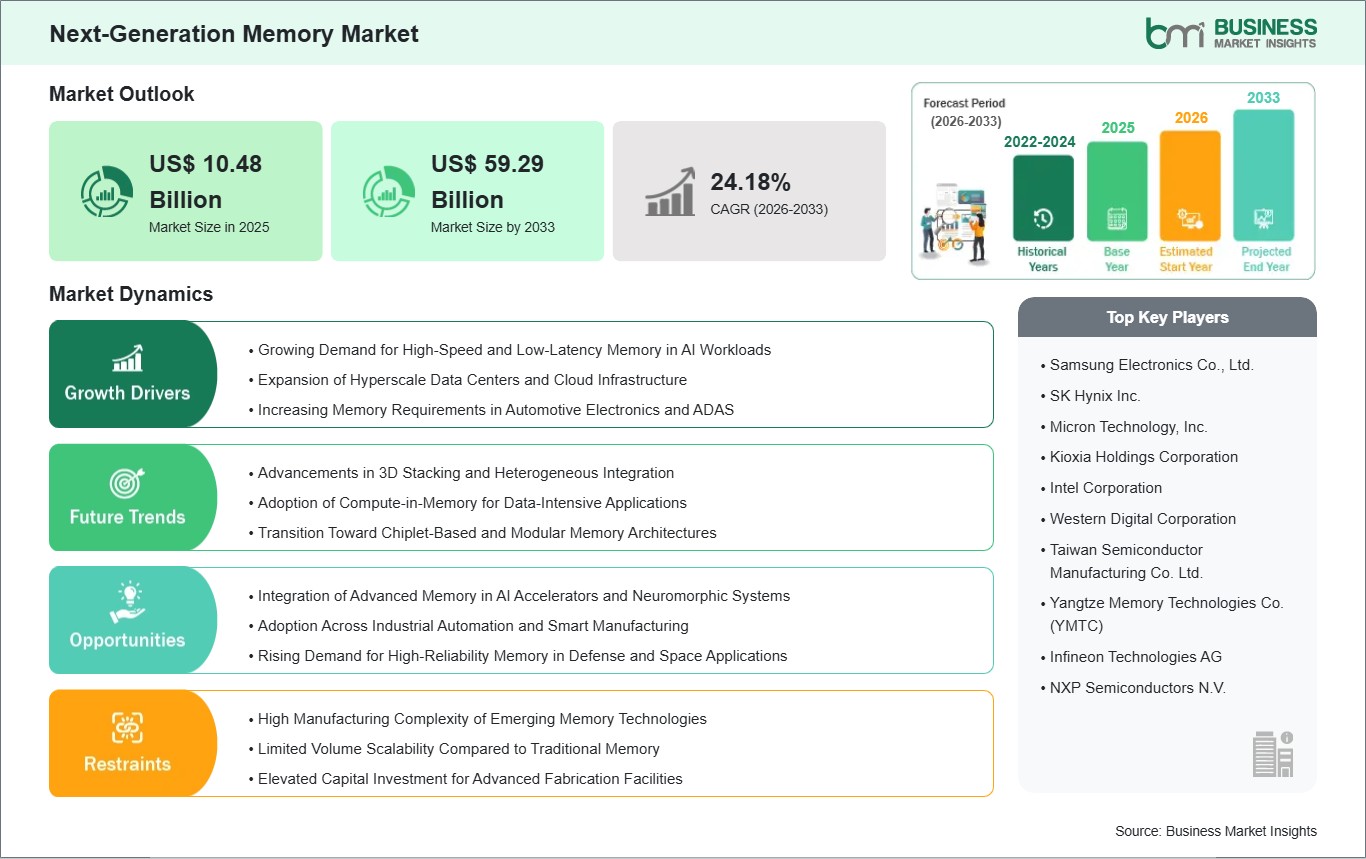 The Next-Generation Memory Market is valued at US$ 10.48 Billion in 2025, it is projected to reach US$ 59.29 Billion by 2033.