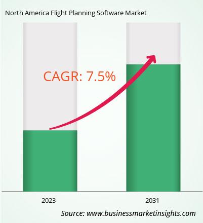 The North America flight planning software market was valued at US$ 202.71 million in 2023 and is expected to reach US$ 360.48 million by 2031; it is estimated to register a CAGR of 7.5% from 2023 to 2031.