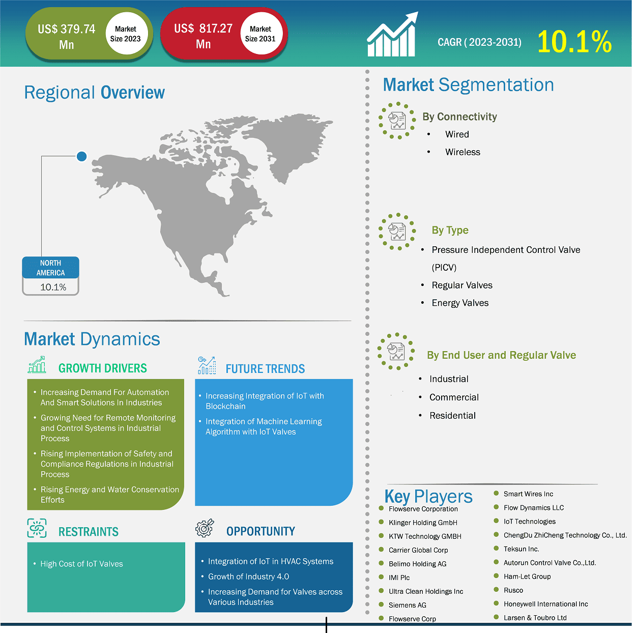 North America IoT Valves Market Report (2021-2031) by Scope, Segmentation, Dynamics, and Competitive Analysis