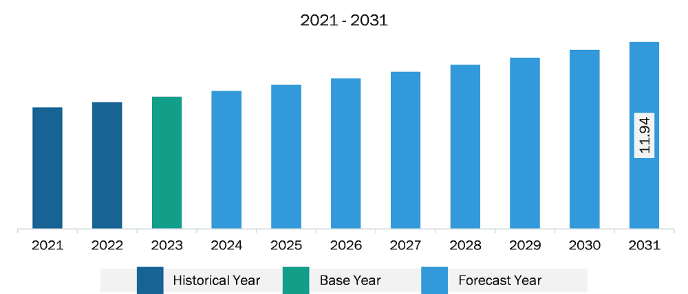 The North America microelectrode array in vitro market was valued at US$ 8.44 million in 2023 and is expected to reach US$ 11.94 million by 2031; it is estimated to register a CAGR of 4.4% from 2023 to 2031.