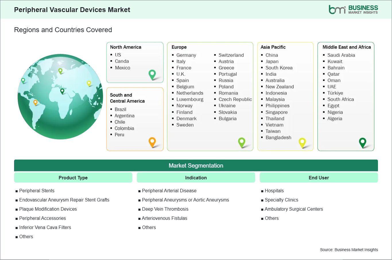 The geographical scope of the Peripheral Vascular Devices Market report is divided into five regions: North America, Asia Pacific, Europe, the Middle East & Africa, and South & Central America.