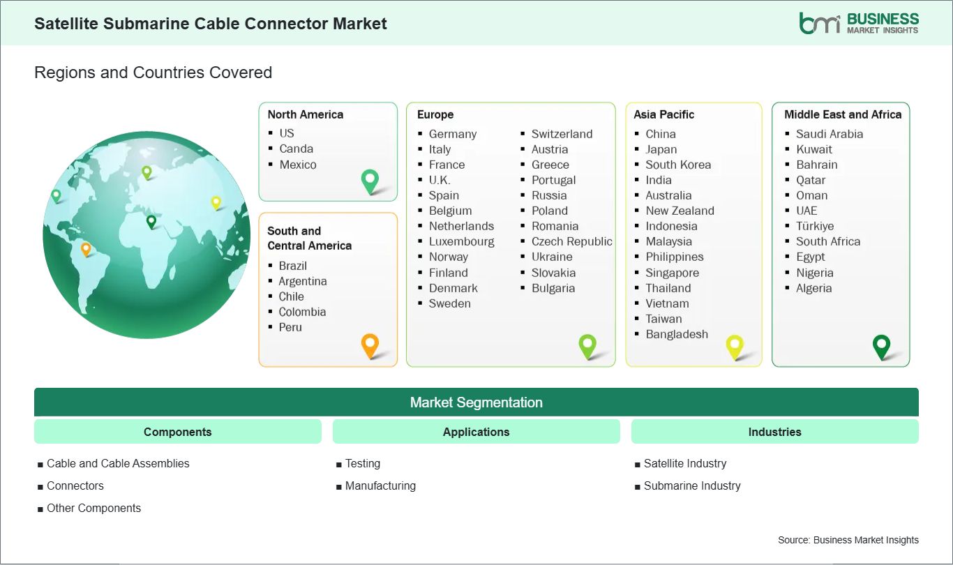 The geographical scope of the Satellite Submarine Cable Connector market report is divided into five regions: North America, Asia Pacific, Europe, Middle East & Africa, and South & Central America.
