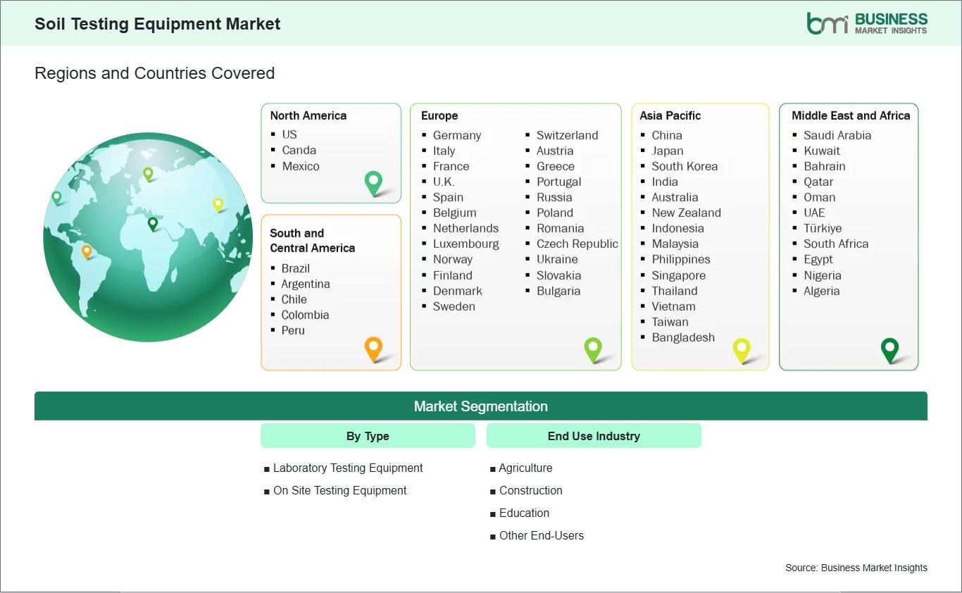 The geographical scope of the Soil Testing Equipment market report is divided into five regions: North America, Asia Pacific, Europe, Middle East & Africa, and South & Central America.