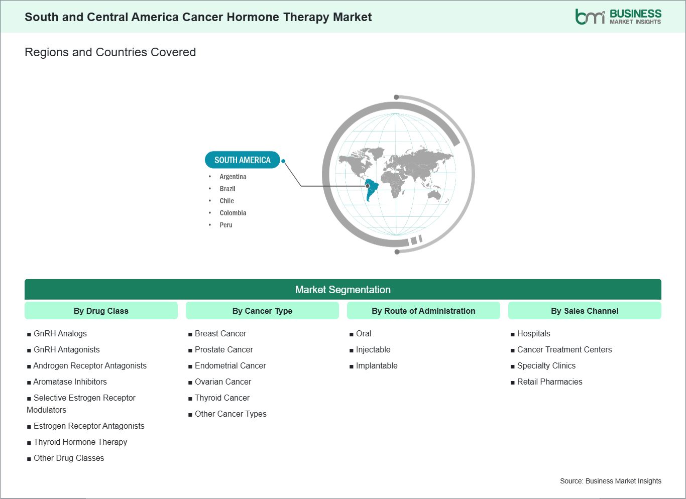 The "South and Central America Cancer Hormone Therapy Market Size and Forecast (2021–2031)" report provides a detailed analysis of the market covering below areas: