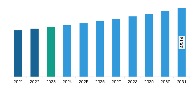 The South & Central America pediatric masks market was valued at US$ 33.42 million in 2023 and is expected to reach US$ 46.14 million by 2031; it is estimated to register a CAGR of 4.1% from 2023 to 2031.
