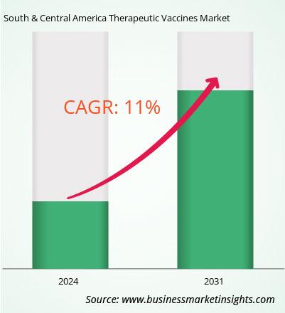 As per our report South & Central America Therapeutic Vaccines Market, the market size is valued at US$ 3,370.35 Thousand in 2024, projecting it to reach US$ 6,998.78 Thousand by 2031. This translates to a CAGR of approximately 11.0% during the forecast period.