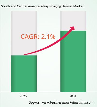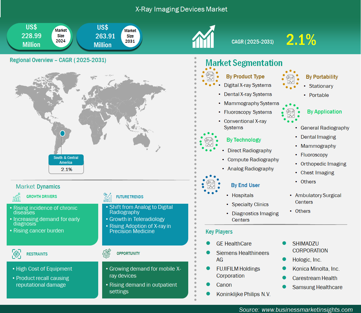 The South and Central America X-Ray Imaging Devices Market is valued at US$ 228.99 Million in 2024, it is projected to reach US$ 263.91 Million by 2031.