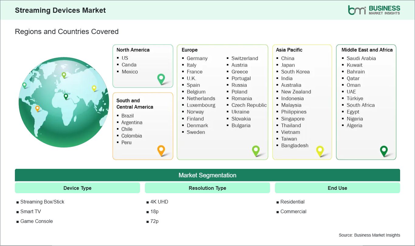 The geographical scope of the Streaming Devices market report is divided into five regions: North America, Asia Pacific, Europe, Middle East & Africa, and South & Central America.