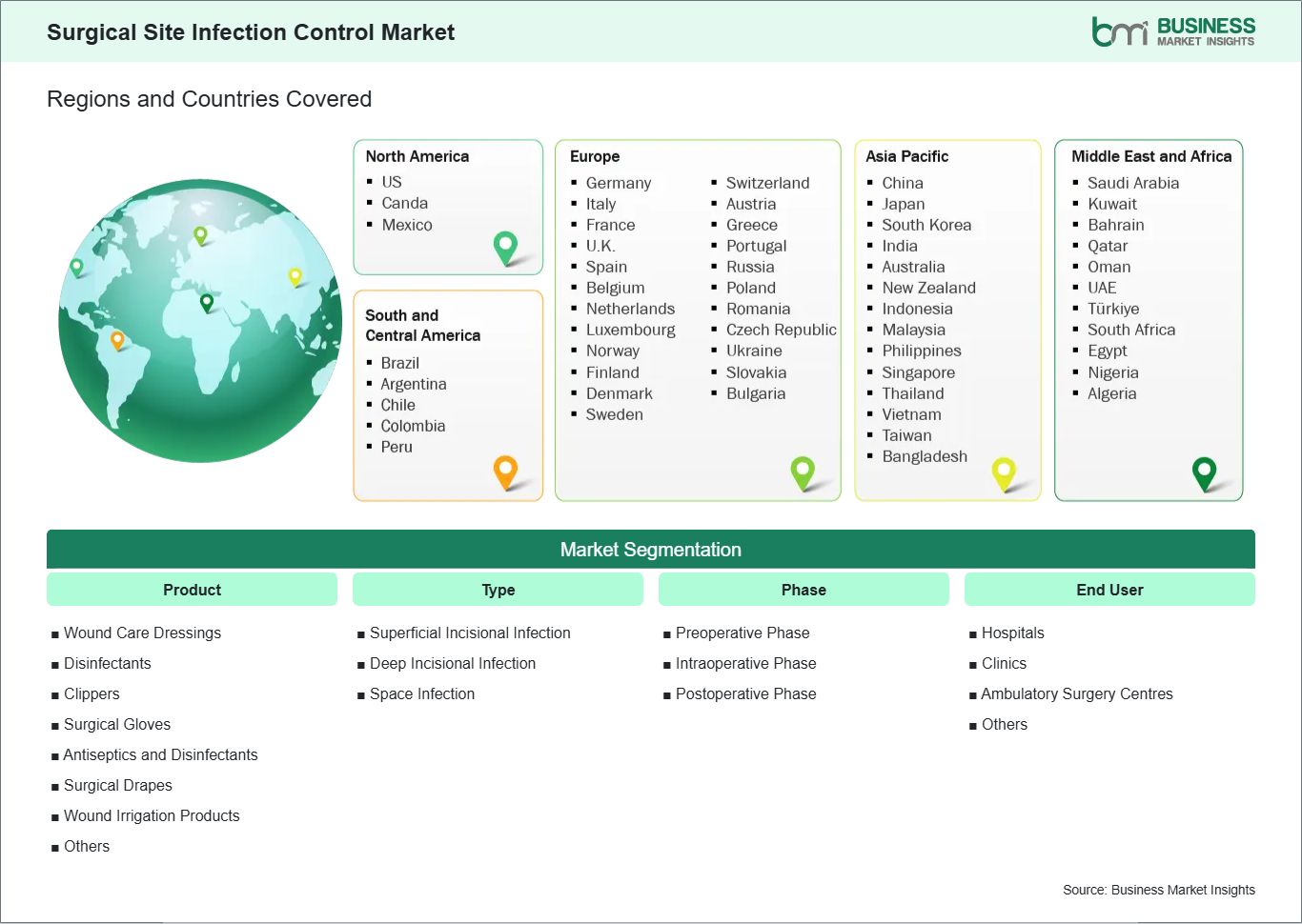 The geographical scope of the Surgical Site Infection Control Market report is divided into five regions: North America, Asia Pacific, Europe, Middle East & Africa, and South & Central America.