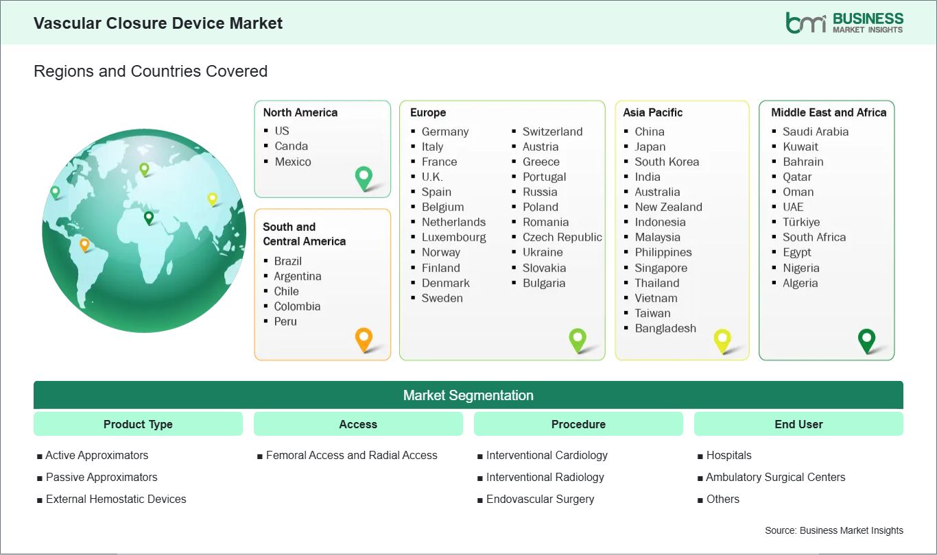 The geographical scope of the Vascular Closure Device market report is divided into five regions: North America, Asia Pacific, Europe, the Middle East & Africa, and South & Central America.