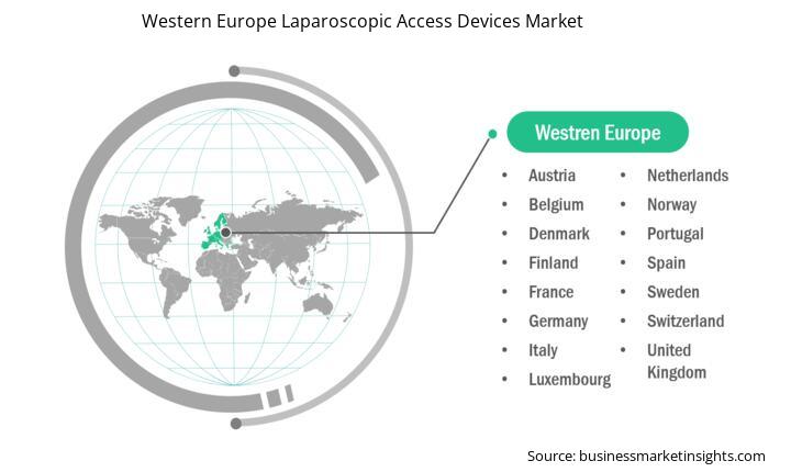 Based on region, the Western Europe laparoscopic access devices market is further segmented into Belgium, the Netherlands, Luxembourg, Germany, France, Italy, Spain, Switzerland, Sweden, Austria, the United Kingdom, Denmark, Portugal, Norway, and Finland. Germany held the largest share in 2024.